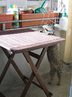 Tretel yesterday... he as well didn't really know if the balcony is a good thing. At the moment he's napping in the doorway and I think they both love the additional space.